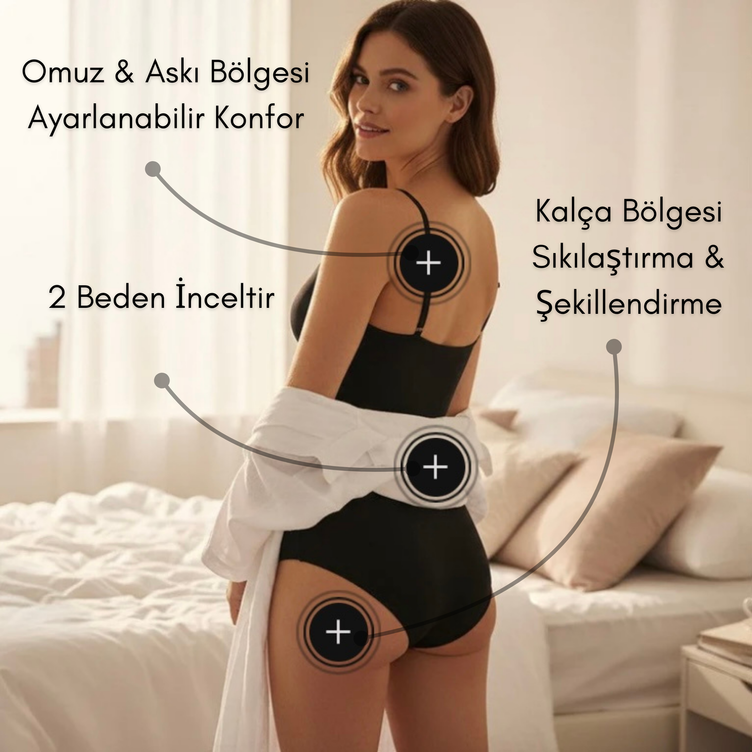 2- Kıyafet altında 2 beden ince görünüm sağlar; iz ve potluk bırakmaz.